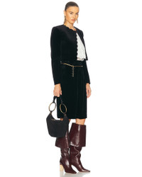 Details - Suede exterior with grained leather lining - Made in Italy - Top zipper closure - One main compartment - Interior hanging slip pocket - Gold-tone metal rings - Measures approx 20 cm W x 17 cm H x 13 cm D - Shoulder strap with a 28 cm drop - Our Style No. CLOE-WY1124 - Manufacturer Style No. C25SS618O84