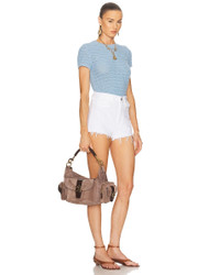 Details - Suede calfskin leather exterior with buffalo leather trim and gold-tone hardware - Linen canvas lining - Top zip closure - One main compartment - One interior slip pocket - Three exterior magnetic buckle pockets - Two exterior zip pockets - Detachable top handle - Measures approx 34 cm W x 17 cm H x 15 cm D - Detachable and adjustable shoulder strap with a 19.7-60 cm drop - Made in Italy - Our Style No. CLOE-WY1153 - Manufacturer Style No. 25US533P37