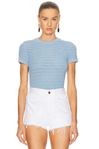 CREW-NECK LOGO TOP IN COTTON CROCHET KNIT