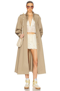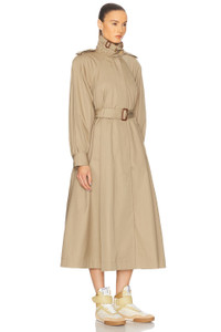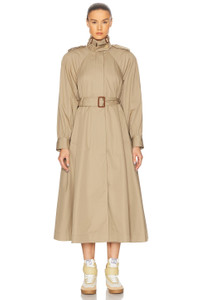 HIGH-NECK LONG TRENCH COAT IN COTTON GABARDINE