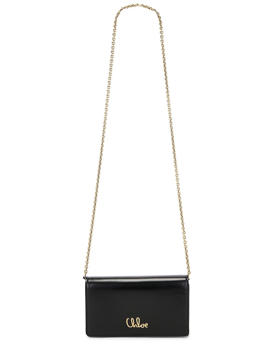 CHLOÉ ICONIC FLAP WALLET ON CHAIN IN SHINY LEATHER