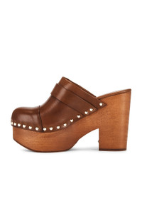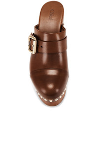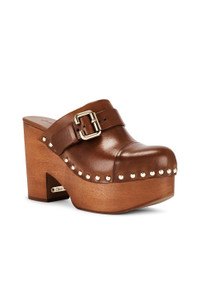 Details - Shiny cowhide upper with crepe rubber sole - Made in Italy - Slip-on styling - Calfskin lining - Almond toe - Gold-tone buckle strap detail - Gold-tone studs at sides - Wood midsole - Approx 108mm/ 4.25 inch heel - Approx 25mm/ 1 inch platform - Our Style No. CLOE-WZ496 - Manufacturer Style No. C24A02TLT