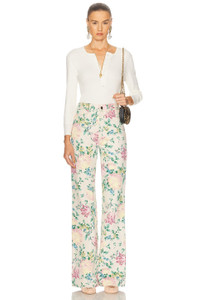 Details - Self: 100% cotton - Contrast Fabric: 100% calf leather - Machine wash - Zip fly with button closure - 5-pocket styling - Floral print throughout - Rigid denim fabric - Made in Italy - Our Style No. CLOE-WJ26 - Manufacturer Style No. 25UDP03256