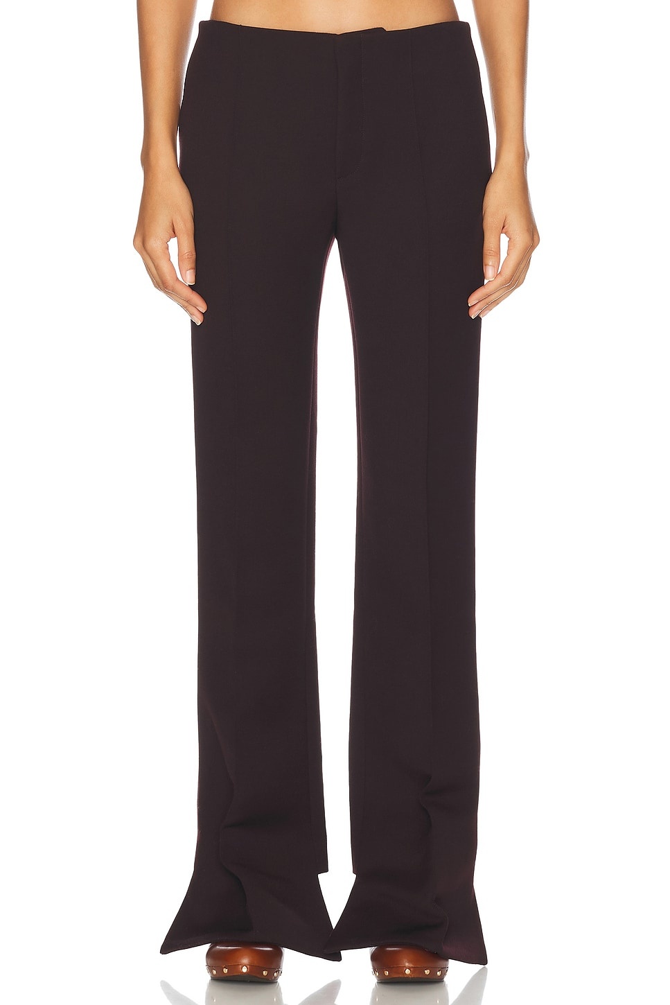 Details - Self: 100% virgin wool - Lining: 51% viscose, 49% cotton - Made in France - Dry clean only - Zip fly with hook and bar closure - 4-pocket styling - Front pressed pleat design - Low-rise fit - Twill fabric with hi-low hem design - Our Style No. CLOE-WP79 - Manufacturer Style No. 24WPA02143