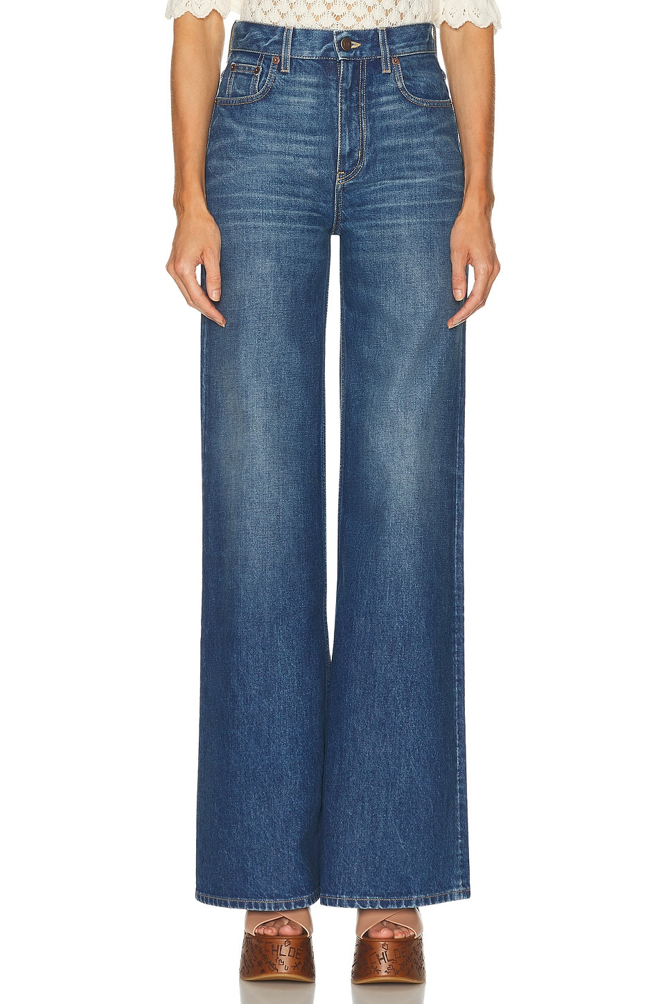 Details - Self: 100% cotton - Lining: 65% polyester, 35%cotton - Contrast Fabric: 100% calf leather - Machine wash - Zip fly with button closure - 5-pocket design - Intentional fading and light whiskering - Back leather logo patch - Heavyweight denim fabric - Made in Italy - Our Style No. CLOE-WJ29 - Manufacturer Style No. 25ADP42251