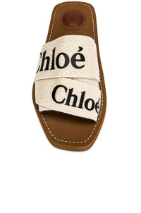 Details - Linen upper with EVA sole - Made in Vietnam - Crossover ribbon straps with Chloé logo print - Cowhide leather patch with debossed Chloé logo at footbed - Square toe - Our Style No. CLOE-WZ392 - Manufacturer Style No. C22U188Z310135W