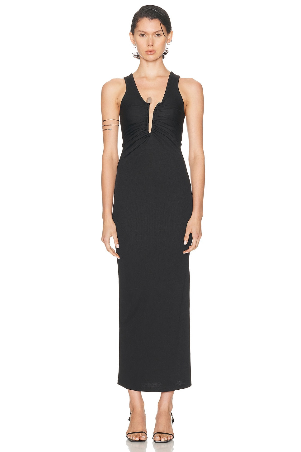 Details - 96% polyester, 4% spandex - Dry clean only - Unlined - Pull-on styling - Acrylic beads and metal hardware accent at neckline - Ribbed jersey fabric - Made in Vietnam - Our Style No. CHRF-WD324 - Manufacturer Style No. 25023382