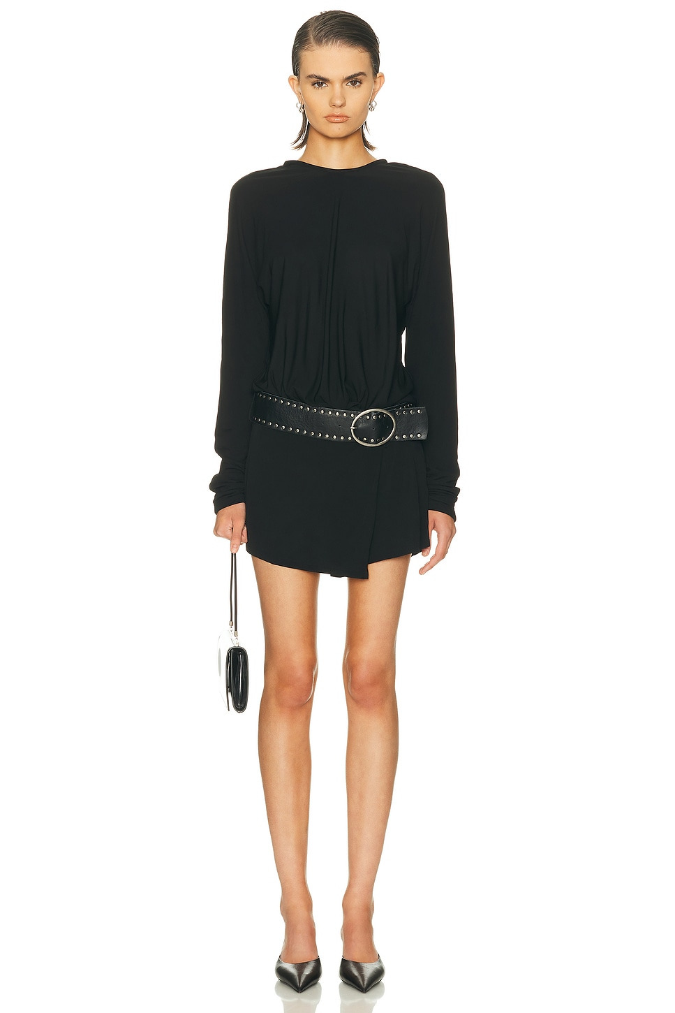Belted open-back jersey mini dress Black