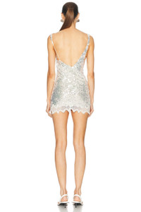 Cotton-blend lace-trimmed sequined mesh mini dress