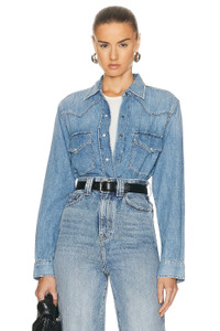 Cropped Western Shirt In Carolina Blue