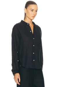 Kayla Shrunken Linen Shirt In True Navy