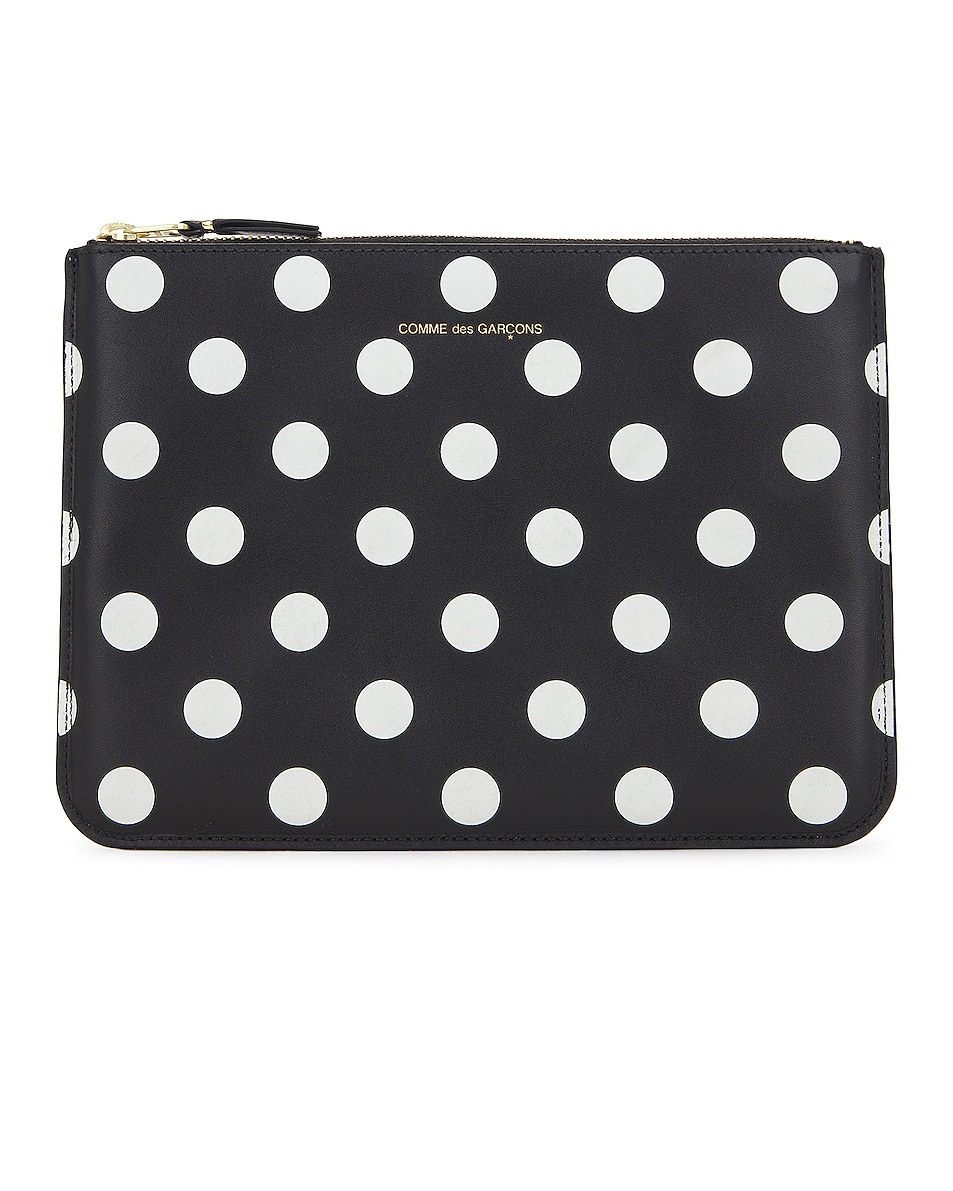 Details - Cowhide leather with leather lining and gold-tone hardware - Made in Spain - Top zip closure with leather pull - One main compartment - Gold foil logo on front - Measures approx 8.75"W x 6.5"H x 0.5"D - Our Style No. CMEX-UY60 - Manufacturer Style No. SA5100PD