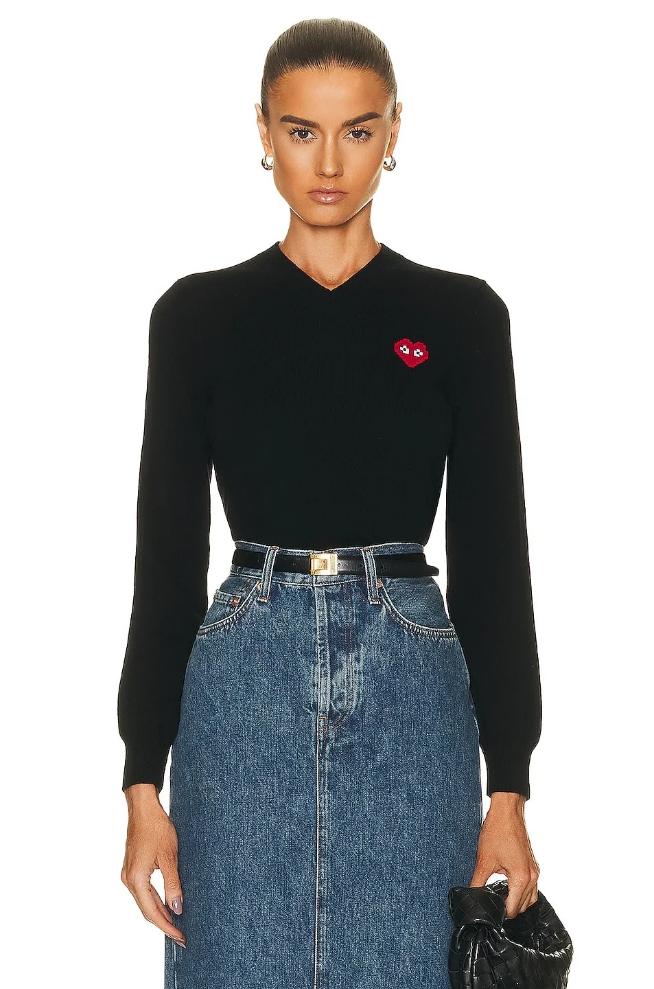 Comme des Garçons Play Invader Heart V-Neck Pullover
