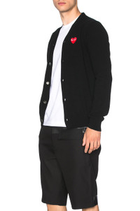 UNISEX V-NECK CARDIGAN RED HEART - BLACK