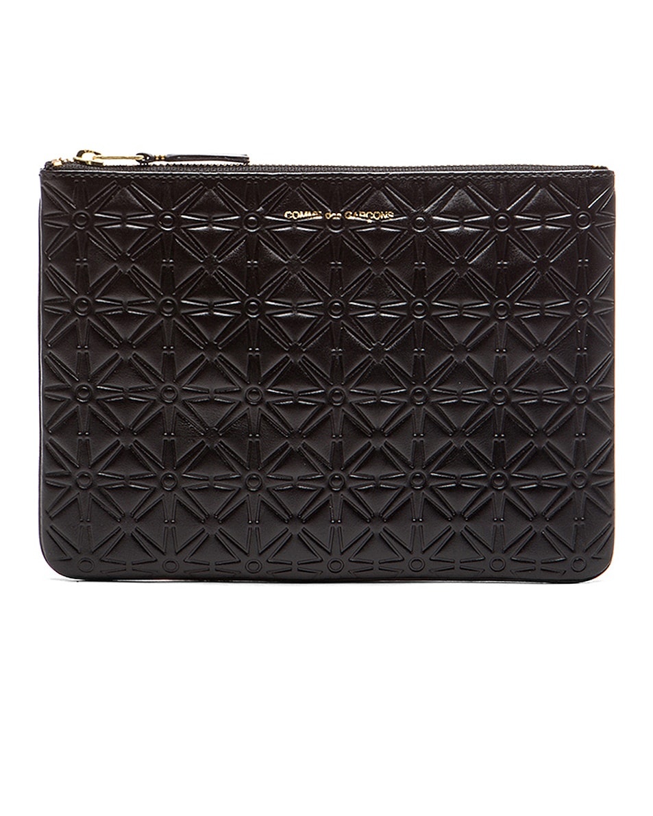 Details - Star embossed cowhide leather - Made in Spain - Measures approx 8.5"W x 6.5"H x 1"D - Zip top closure - Our Style No. CMEX-UA17 - Manufacturer Style No. SA510E-A