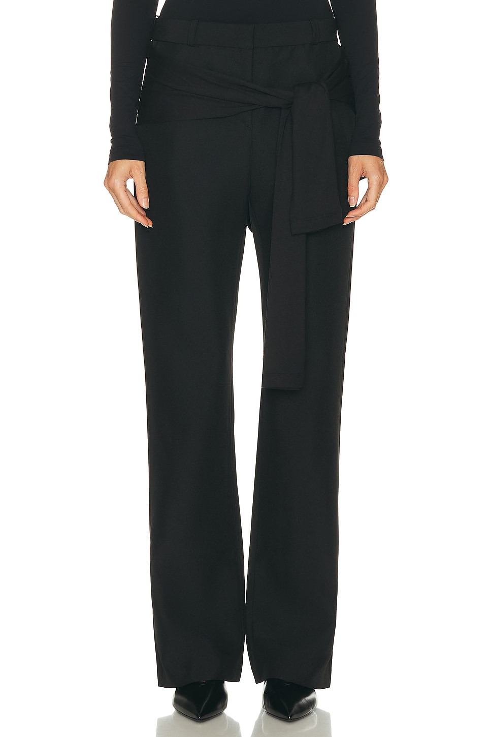 Details - 100% recycled polyester - Trim: 50% cotton, 50% modal - Dry clean - Zipper fly with hook and bar closure - Faux long sleeve shirt-wrap attached to waist - Belt hoops - Made in Portugal - Our Style No. CRNF-WP29 - Manufacturer Style No. COPP140F3004