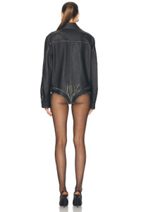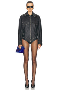 Details - Self: 100% leather - Lining: 57% viscose, 43% polyester - Made in Italy - Professional leather clean only - Exposed front zipper closure - Gusset button snap closure - Front flap pockets at breast and side welt pockets - Genuine leather - Our Style No. CRNF-WO19 - Manufacturer Style No. COPOW27F6017