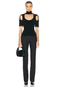 Details - Self: 100% recycled polyester - Lining: 52% acetate, 48% viscose - Made in France - Dry clean only - Zip fly with hook and bar closure - Side slant pockets - Singular back welt pocket - Crepe fabric - Our Style No. CRNF-WP27 - Manufacturer Style No. COPP76F3004