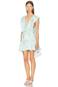 Details - 68% viscose, 32% linen - Dry clean only - Unlined - Hidden back zipper closure - Plunging neckline at front and back - Drawstring at skirt - Sateen fabric with eyelet trim - Made in Bulgaria - Our Style No. CRNF-WD92 - Manufacturer Style No. COPR167F3041