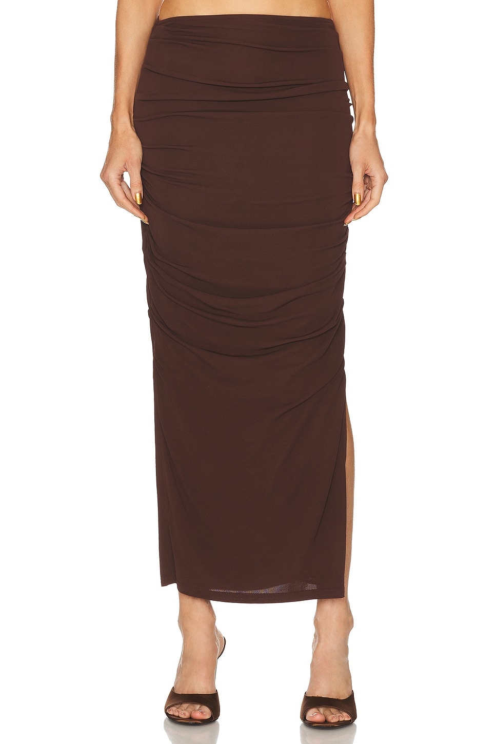 Details - Self: 100% viscose - Lining: 95% polyester, 5% spandex - Hand wash - Fully lined - Elasticized waistband - Slinky jersey fabric with ruching detail and side slits - Item not sold as a set - Made in China - Our Style No. GAIA-WQ29 - Manufacturer Style No. SK28823JY1952