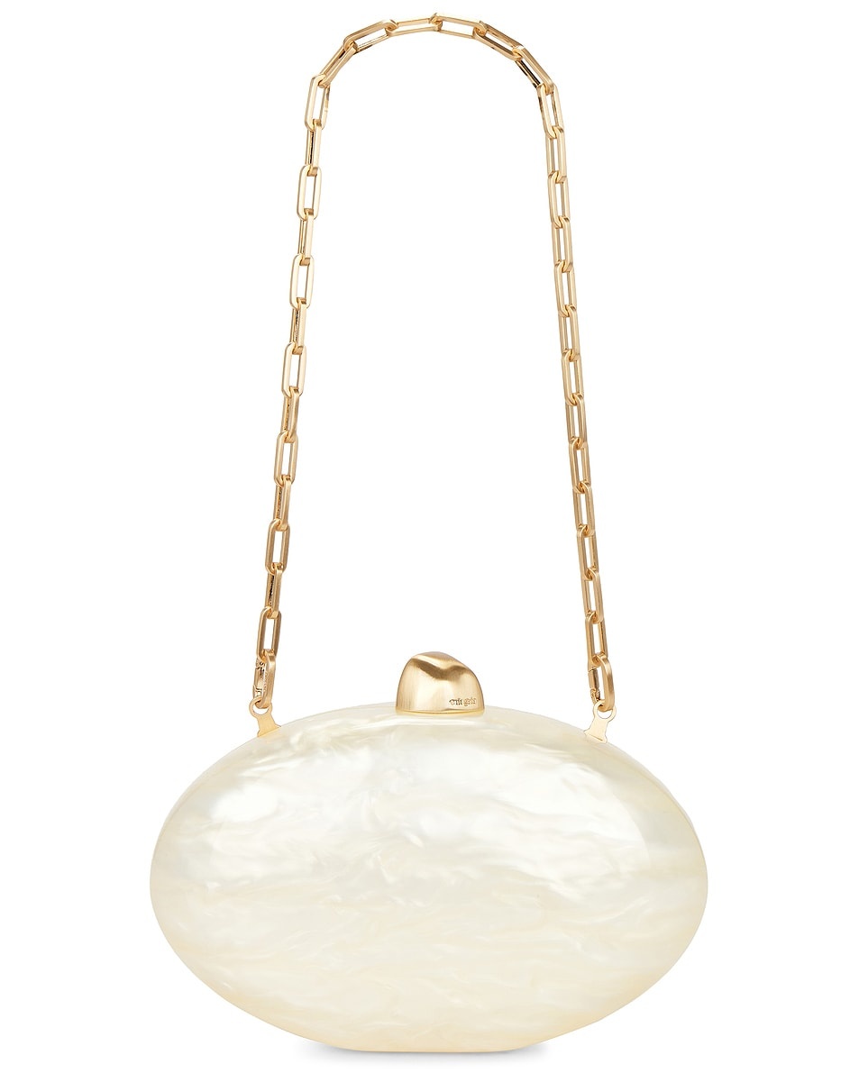 Details - Unlined glossy acrylic - Made in China - Magnetic frame with top clasp closure - One main compartment - Detachable gold-tone chain shoulder strap - Measures approx. 11 cm W x 14 cm H x 7 cm D - Shoulder strap with a 28 cm drop - Our Style No. GAIA-WY157 - Manufacturer Style No. CL3669AC3103