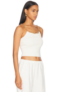 Details - 79% viscose, 21% nylon - Made in China - Dry clean only - Pull-on styling - Gold-tone hardware at shoulder straps and neckline - Cropped fit - Knit fabric - Our Style No. GAIA-WS147 - Manufacturer Style No. KT3852YN2611