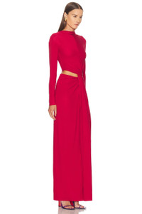 Details - 92% viscose, 8% elastane - Hand wash - Fully lined - Hidden back zip closure - Front twist accent with wrap around cut-out - Front slit - Heavyweight jersey fabric - Made in China - Our Style No. GAIA-WD340 - Manufacturer Style No. DR1214JY1952