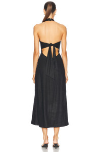 Details - Self: 51% linen, 47% rayon, 2% spandex - Lining: 95% polyester, 5% elastane - Made in China - Dry clean only - Fully lined - Halterneck button closure - Hidden back zipper closure - Cut-out detail at front - Tie-up design at back - Linen fabric - Our Style No. GAIA-WD272 - Manufacturer Style No. DR3758LN2795