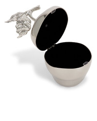 Details - 90% aluminum, 10% zinc alloy - Made in China - Top hinge closure - Lined interior - Sculptural clutch designed in the shape of an apple. - Measures approx 9 cm W x 15 cm H x 11 cm L - Our Style No. GAIA-WY178 - Manufacturer Style No. CL3671MT3215