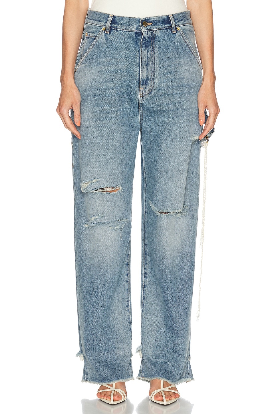 Lisa Chain Adorned Loose Fit Carpenter Straight Leg