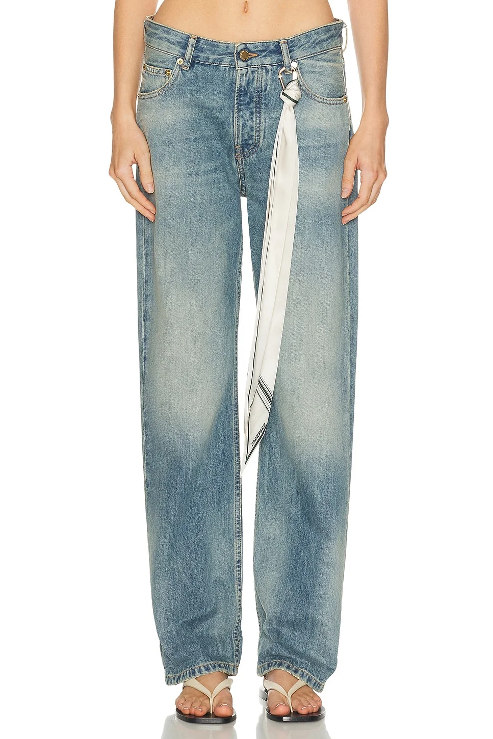 Details - Self: 100% cotton - Lining: 65% polyester, 35% cotton - Machine wash - Button fly closure - 5-pocket design - Detachable scarf design with carabiner closure - Intentional fading and light whiskering - Back logo patch - Heavyweight denim fabric - Made in Italy - Our Style No. DPAF-WJ28 - Manufacturer Style No. WTR21 DBL20W051 W051