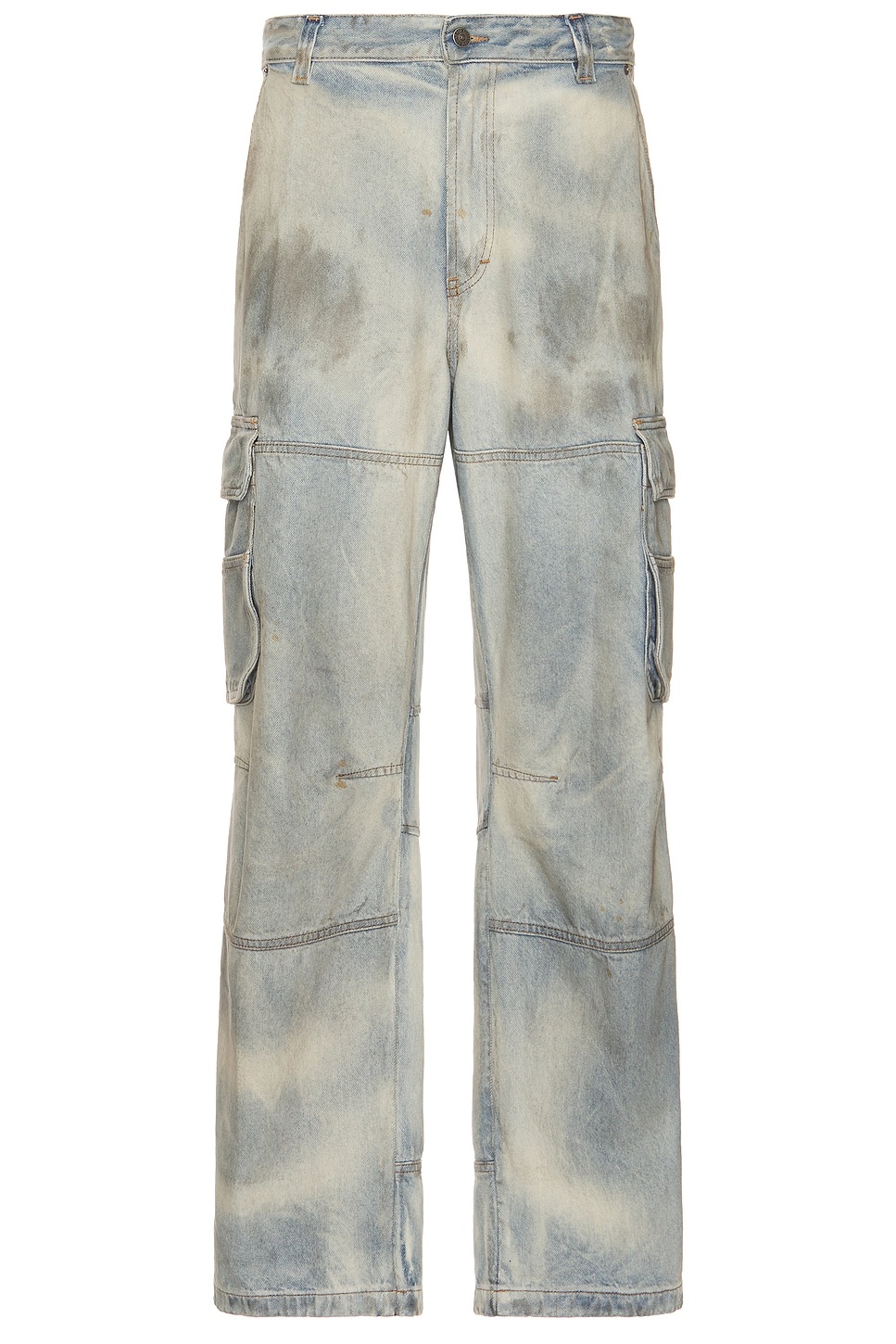 Details - 100% cotton - Made in Romania - Machine wash - Zip fly with button closure - 4-pocket design - Cargo pockets - Midweight denim fabric with intentionally tarnished areas - Our Style No. DIEF-MJ10 - Manufacturer Style No. A147240CBDJ