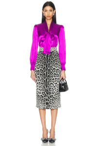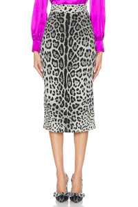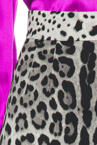 Charmeuse calf-length pencil skirt with leopard print