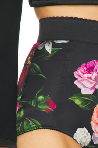 Details - Self: 68% viscose, 24% polyamide, 8% elastane - Lining: 65% silk, 24% polyamide, 11% elastane - Contrast Fabric: 55% polyester, 35% polyamide, 10% elastane - Dry clean only - Back zip closure - Elasticized waistband - Boned sides - Scalloped trim - Lightweight floral satin fabric - Made in Italy - Our Style No. DOLF-WF37 - Manufacturer Style No. FTAG1TFSIB2
