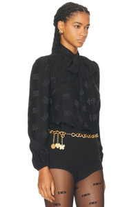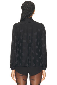 Details - 100% silk - Dry clean only - Front button closure - Attached front tie accent - Allover tonal DG logo detailing - Elasticized cuffs - Lightweight chiffon fabric - Made in Italy - Our Style No. DOLF-WS170 - Manufacturer Style No. F5Q44TFJ1JO