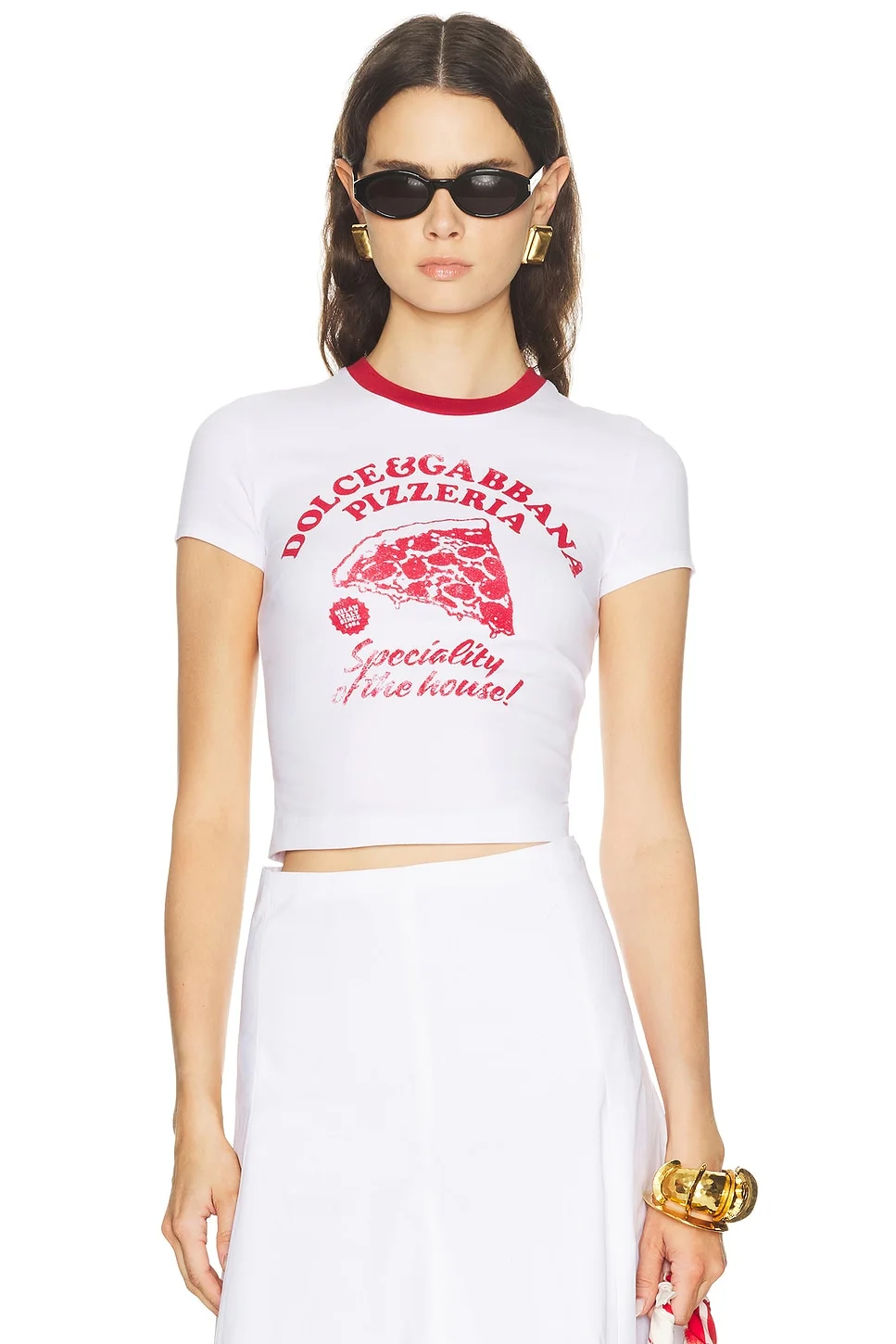 Details - Self: 90% cotton, 10% elastane - Contrast Fabric: 100% cotton - Machine wash - Pull-on styling - Front printed design - Ribbed trim - Cropped fit - Midweight jersey fabric - Made in Italy - Our Style No. DOLF-WS178 - Manufacturer Style No. F8W08TGDDM8