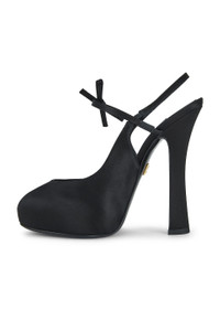 Details - Satin upper with leather sole - Made in Italy - Slingback styling - Leather footbed and lining - Round toe - Approx 25mm/ 1 inch platform - Approx 125mm/ 5 inch heel - Our Style No. DOLF-WZ46 - Manufacturer Style No. CG0930AE547
