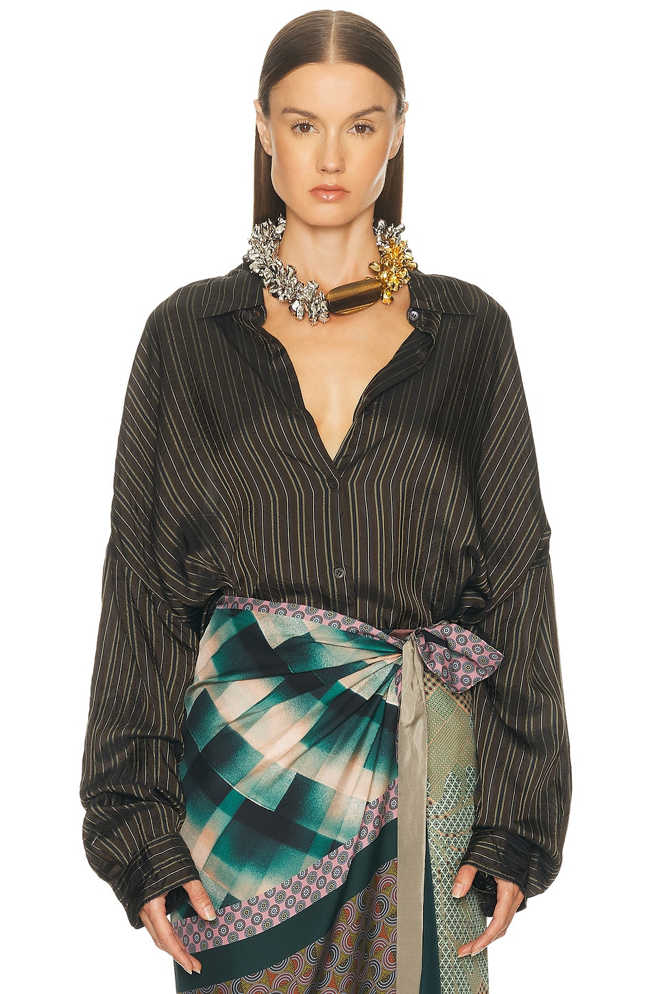 Details - 100% cupro - Wash short and cold (gentle 30 degrees); air dry; follow care label - Front button closure - Oversized cocoon shirt silhouette; dropped shoulders and kimono sleeves for relaxed, fluid drape - Made in Hungary - Our Style No. DRNF-WS4 - Manufacturer Style No. 252-010700-2267