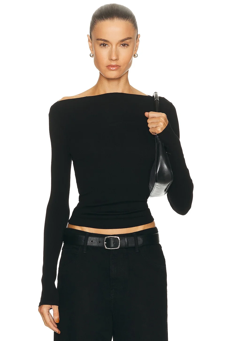Details - 87% viscose, 10% silk, 3% lycra - Made in USA - Machine wash cold - Pull-on styling - Wide neck, semi-off shoulder - Ribbed - Our Style No. ENZF-WS1007 - Manufacturer Style No. SRS3910