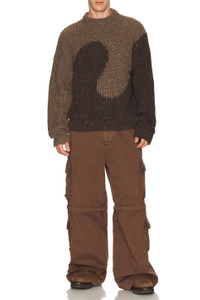 Brown Knit Crewneck Swirl Sweater