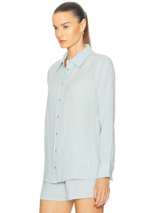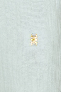 Details - 100% cotton - Machine wash - Front button closure - Button cuffs - Front gold-tone logo detailing - Midweight gauze fabric - Item not sold as a set - Garment is made with a semi-sheer fabric, undergarments can show through - Made in China - Our Style No. ETEF-WS150 - Manufacturer Style No. SL007-42
