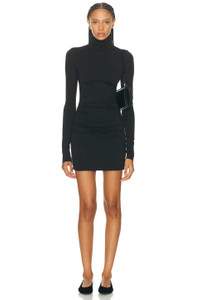 Long Sleeve Ruched Turtleneck Soft Jersey Mini Dress