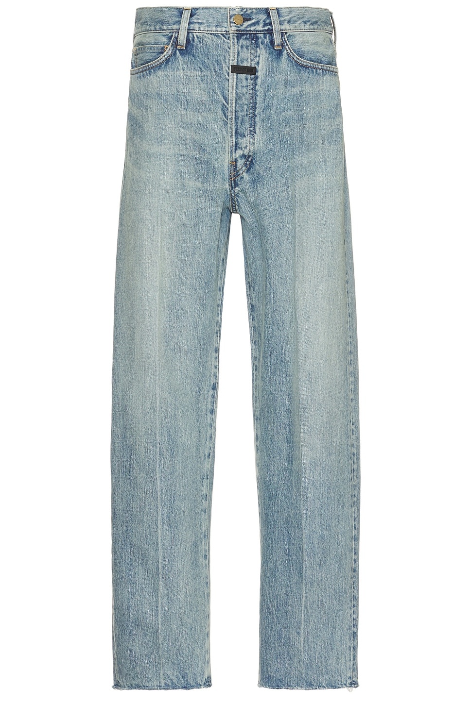 Details - 100% cotton - Made in Japan - Machine wash - Button fly closure - 5-pocket styling - Logo detail at fly - Rigid denim fabric with frayed raw hem design - Our Style No. FEAF-MJ37 - Manufacturer Style No. FGE240-410DNM