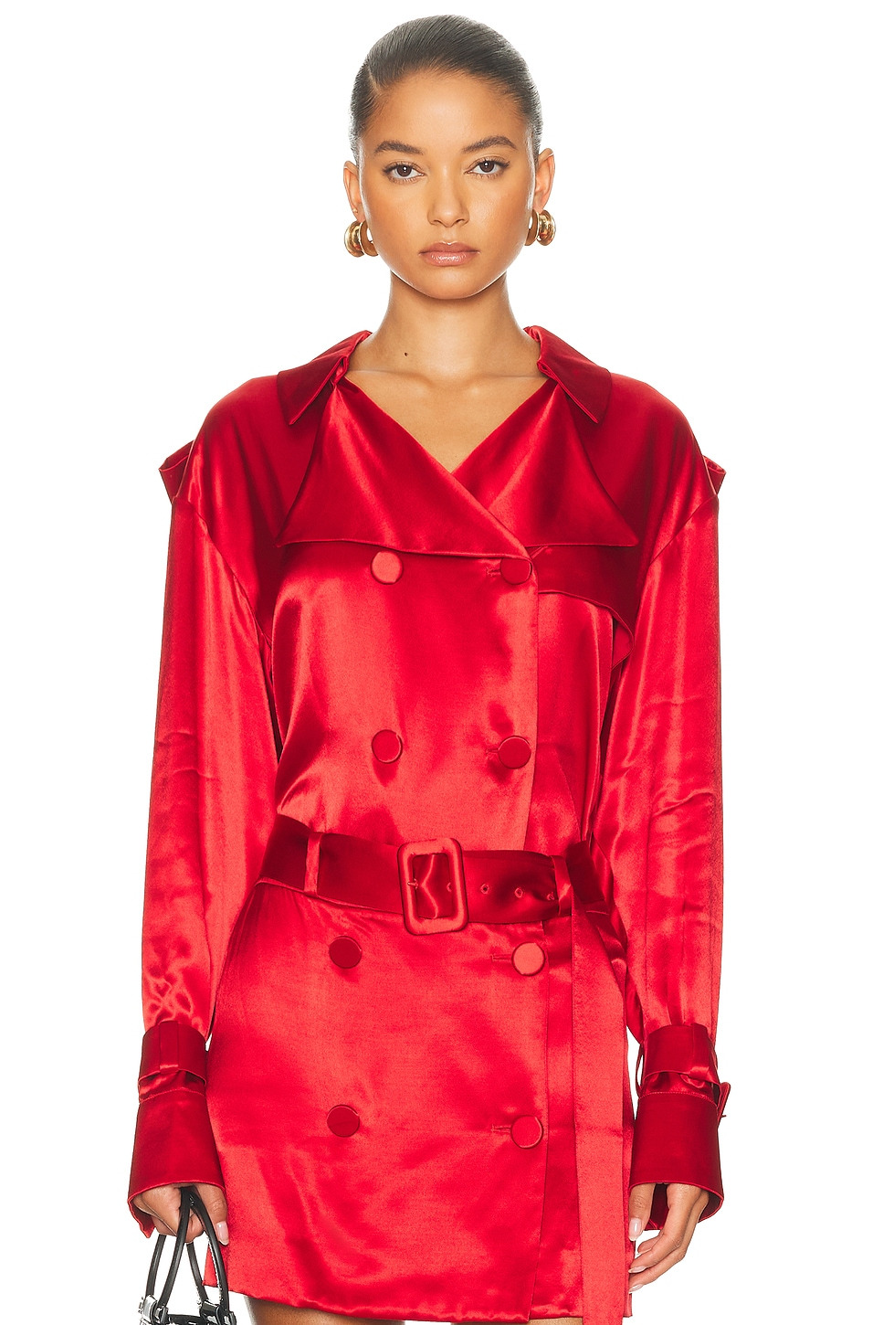 Details - Self: 100% viscose - Lining: 75% acetate, 25% silk - Dry clean only - Dual-breasted front button closure - Detachable waist belt - Satin fabric - Item not sold as set - Made in Italy - Our Style No. FGAF-WO10 - Manufacturer Style No. 788176