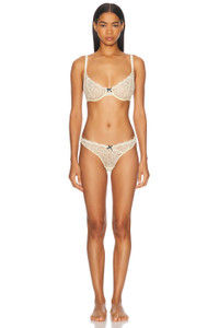Details - Self 1: 61% recycled polyamide, 20% polyamide, 19% elastane - Self 2: 92% silk, 8% elastane - Gusset: 100% cotton - Made in China - Hand wash - Thong design at back - Lace fabric - Item not sold as a set - Our Style No. FLEF-WI267 - Manufacturer Style No. PY0504