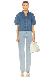 Details - Self: 30% lyocell, 28% organic cotton, 21% pre consumer recycled cotton, 21% post consumer recycled cotton - Lining: 100% cotton - Made in China - Machine wash - Front button closure - Puffy-sleeve design with buttoned cuffs - Rigid denim fabric - Our Style No. FAME-WS252 - Manufacturer Style No. 021DWT744