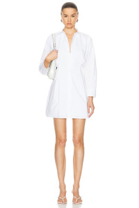 Pleated Poplin Long-Sleeve Mini Shirtdress
