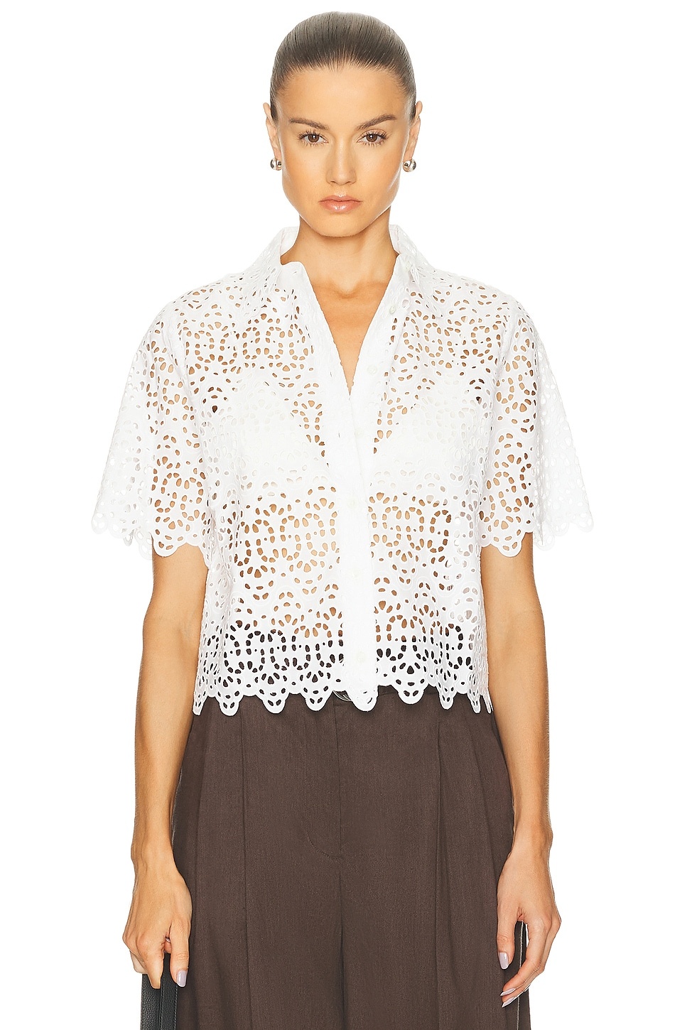 Details - 100% cotton - Dry clean only - Front button closure - Eyelet fabric with scallop hem detail - Garment is intentionally sheer, undergarments will show through. - Please note undergarment not included - Made in China - Our Style No. FAME-WS262 - Manufacturer Style No. WE25WSH007