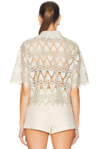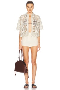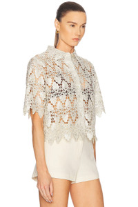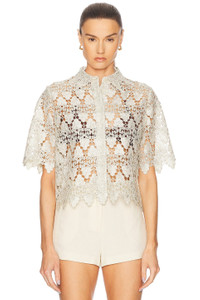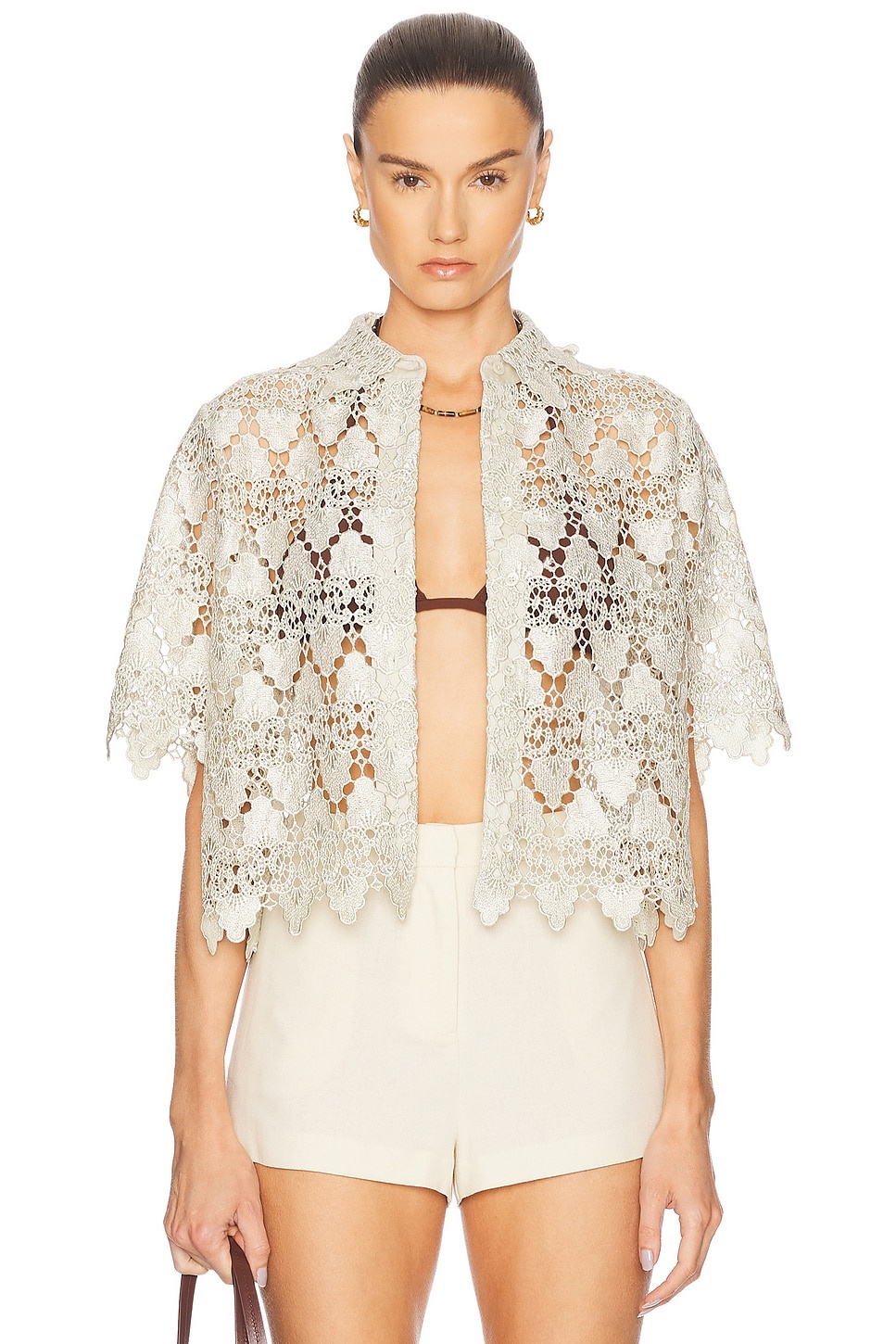 Details - Self & Contrast Fabric: 100% polyester - Dry clean only - Front button closure - Cropped styling - Midweight lace fabric - Garment is intentionally sheer, undergarments will show through. - Please note undergarment not included - Made in China - Our Style No. FAME-WS259 - Manufacturer Style No. WE24WSH010