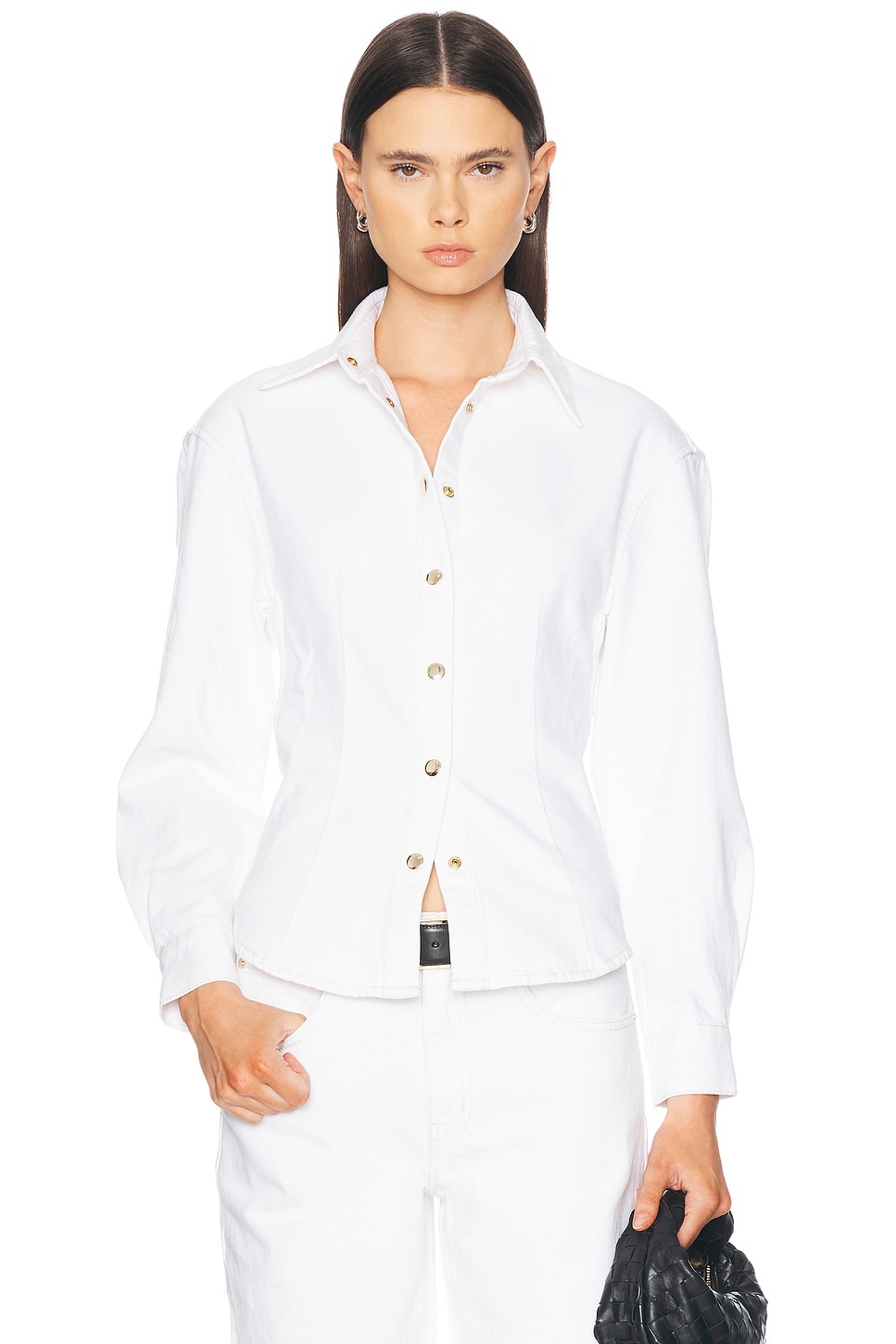 Details - 100% cotton - Made in Turkey - Dry clean only - Front button closure - Darted at waist - Buttoned cuffs - Rigid denim fabric - Our Style No. FAME-WS249 - Manufacturer Style No. WP25DWT007